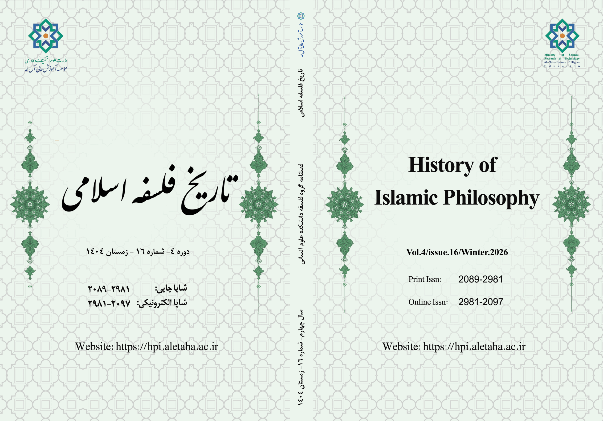 شانزدهمین شماره فصلنامه علمی_پژوهشی «تاریخ فلسفه اسلامی»