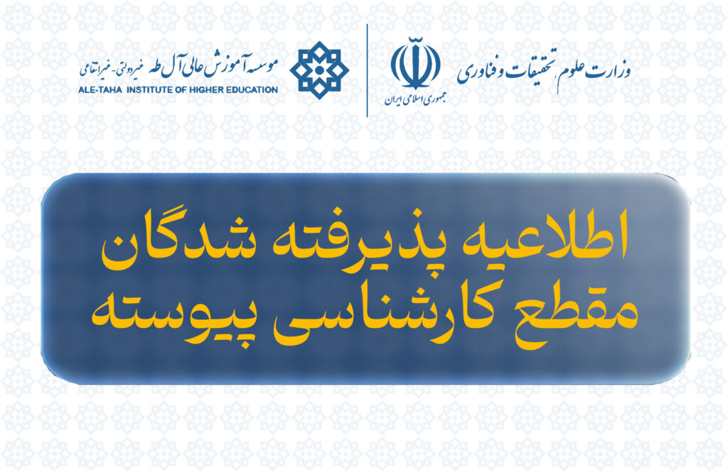 ضمن عرض تبریک به مناسبت قبولی در مقطع کارشناسی پیوسته و ورود شما عزیزان به موسسه آموزش عالی آل‌طه، به اطلاع پذیرفته شدگان محترم؛ مقطع کارشناسی میرساند پذیرش و ثبت…